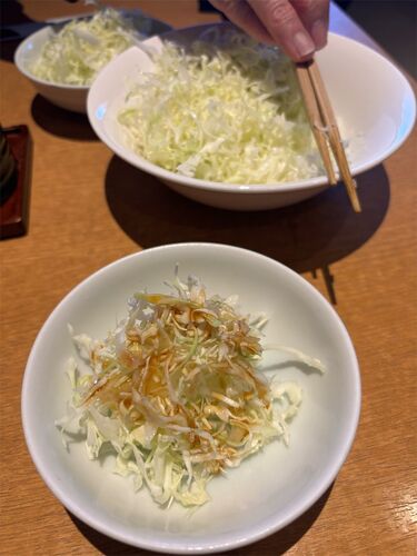 飛島村にあるトンカツ屋さんに行ってきました。 オープン当時に行ってから、2回目の訪問。 何年ぶりだろ?! ランチメニューから、トンカツ100グラムと選べる海鮮2種。 とんかつと牡蠣フライ2個と海老フライのモリモリランチを選びました。 キャベツが運ばれ…