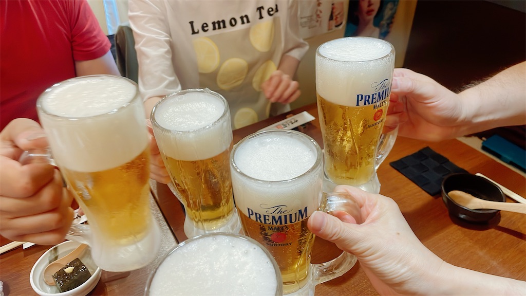 ビールで乾杯。